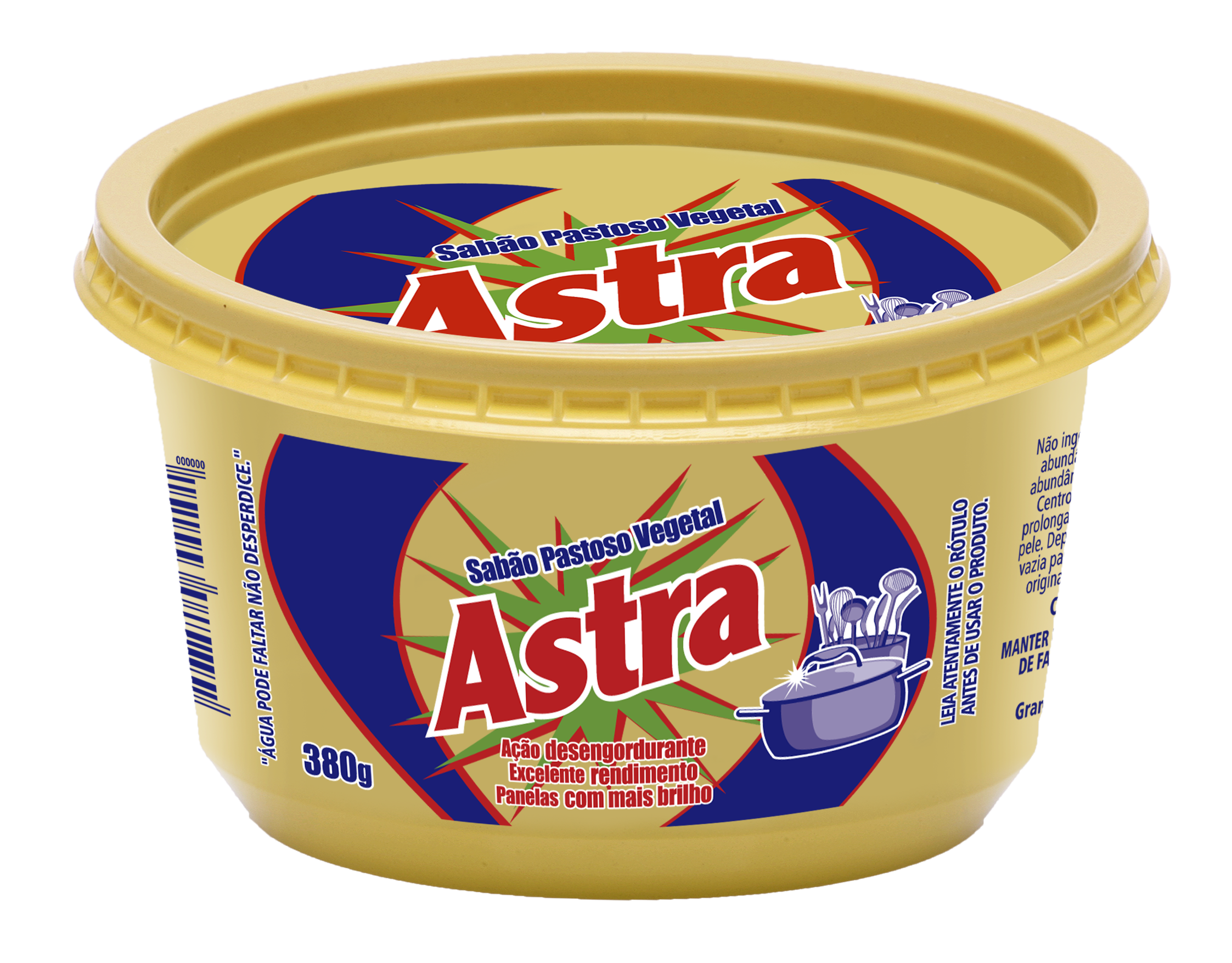 Passe a esponja com água no sabão Pastoso Astra até espumar, esfregue a superfície a ser limpa e enxágue em seguida. Este sabão é ideal para limpar, desengordurar e dar brilho nas suas louças, panelas, talheres, copos, vidros, cristais, fórmicas, fogões, geladeiras e azulejos.